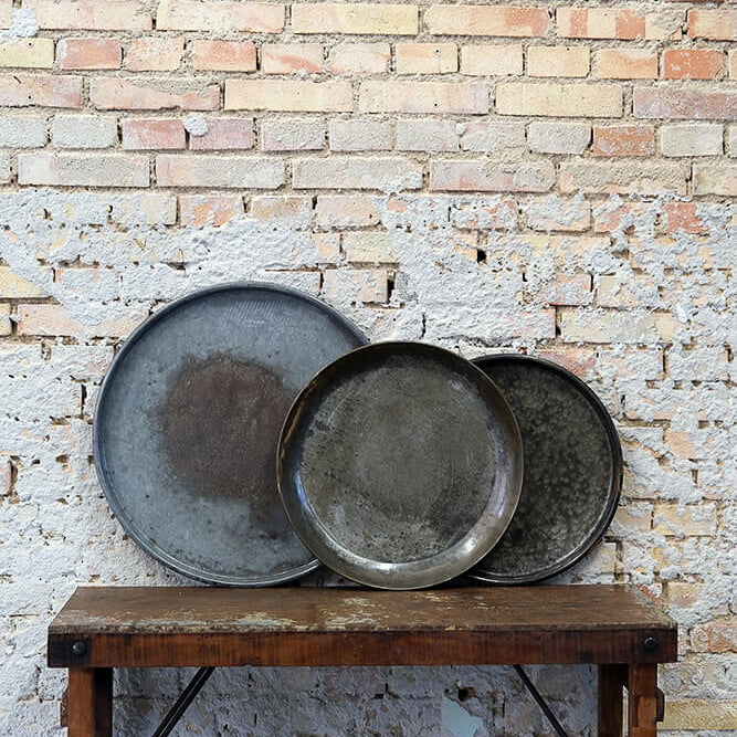 Dieses runde Eisentablett von Trademark Living vereint rustikalen Charme mit robuster Funktionalität. Die metallfarbene Oberfläche macht es langlebig und vielseitig einsetzbar.
